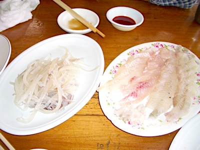 お刺身とスープにしてもらいました。焼いたり炒めたりってのも惹かれたけど、せっかく新鮮なんだからとお刺身メインに。甘くて歯ごたえもあって、どれもこれもおいしかったです。