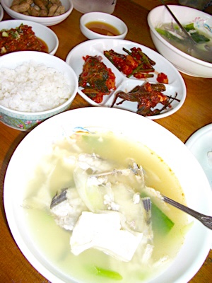 このあたりの鮮魚店は、1階で魚を選び、上の階の食堂で調理してもらって食べることができる。ので、ランチはイカ・タコ・ヒラメ・アワビ・サザエ・アサリの、魚介尽くしに。