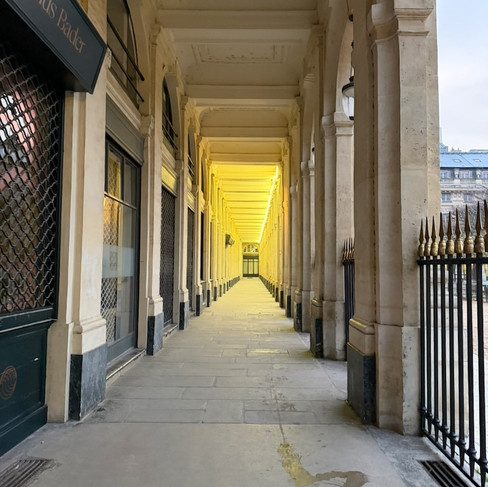 人気の少ないパレ・ロワイヤルの中庭は、空気がピンと張り詰めた静寂の空間。回廊を歩くと時代を遡ったような感覚に。パリはワンコ連れが多いと聞いていたけれど、この時間から犬の散歩がてらジョギングする人もたくさん。いいなぁ。中庭は無料で公開されているそう。